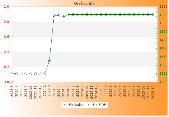 Elo FIDE: 1603    Migliore: 1603  (Dicembre 2025)    Peggiore: 1249  (Luglio 2023)