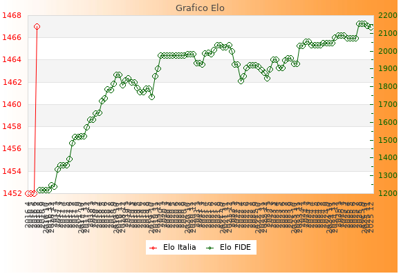 Elo FIDE: 2135    Migliore: 2154  (Ottobre 2025)    Peggiore: 1220  (Agosto 2016)