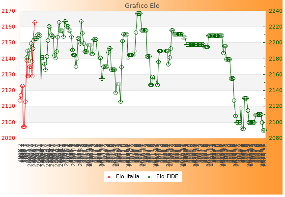 Elo FIDE: 2090    Migliore: 2237  (Settembre 2016)    Peggiore: 2090  (Novembre 2025)