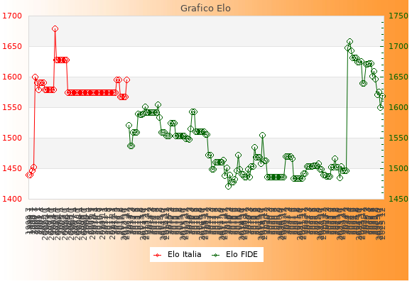 Elo FIDE: 1619    Migliore: 1708  (Aprile 2024)    Peggiore: 1471  (Febbraio 2018)