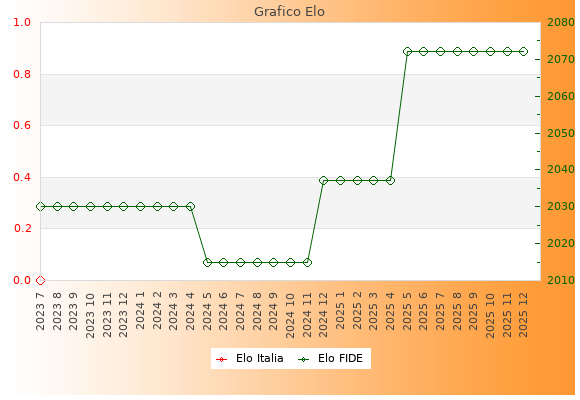 Elo FIDE: 2072    Migliore: 2072  (Dicembre 2025)    Peggiore: 2015  (Maggio 2024)