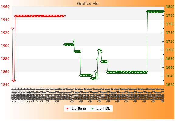 Elo FIDE: 1789    Migliore: 1789  (Dicembre 2025)    Peggiore: 1634  (Gennaio 2018)