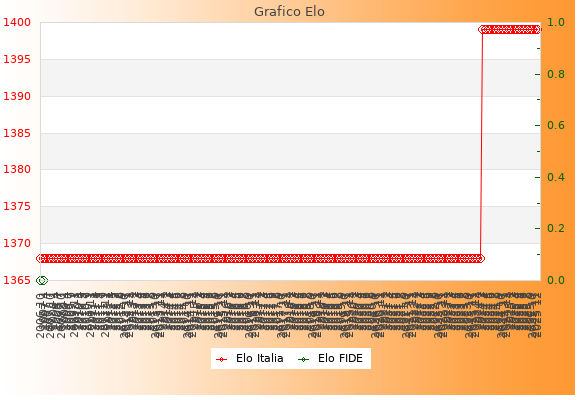 Elo Italia: 1399    Migliore: 1399  (Dicembre 2025)    Peggiore: 1368  (Ottobre 2006)
