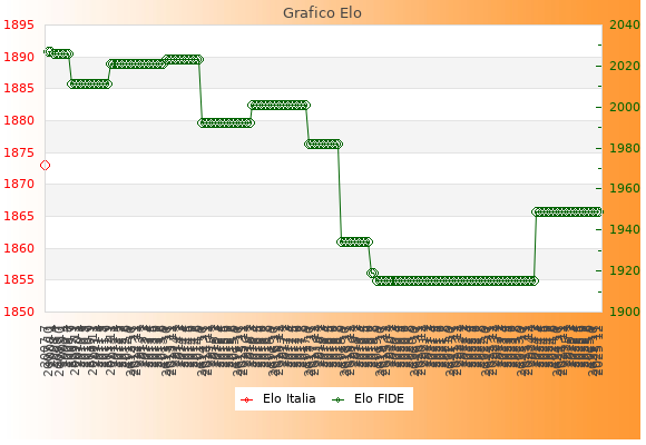 Elo FIDE: 1949    Migliore: 2027  (Gennaio 2008)    Peggiore: 1915  (Settembre 2019)