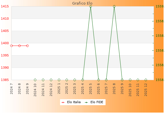 Elo FIDE: 1558    Migliore: 1559  (Agosto 2025)    Peggiore: 1558  (Ottobre 2024)
