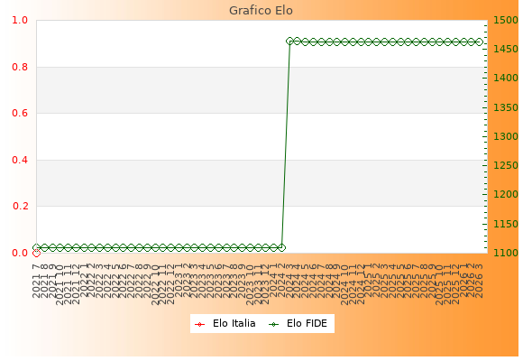 Elo FIDE: 1463    Migliore: 1465  (Aprile 2024)    Peggiore: 1109  (Luglio 2021)