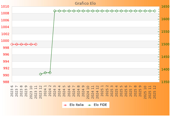 Elo FIDE: 1632    Migliore: 1632  (Dicembre 2025)    Peggiore: 1381  (Dicembre 2023)