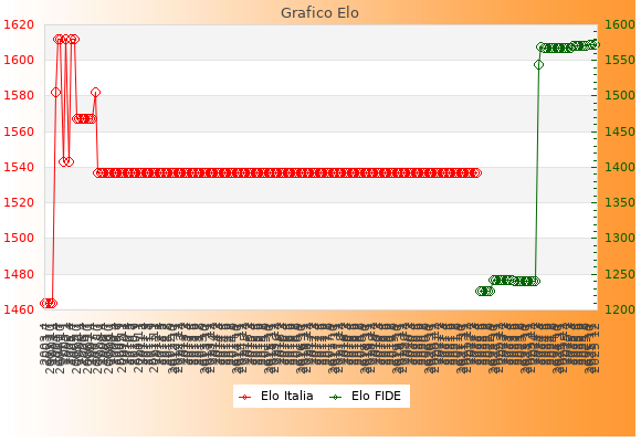 Elo FIDE: 1572    Migliore: 1572  (Dicembre 2025)    Peggiore: 1226  (Maggio 2022)