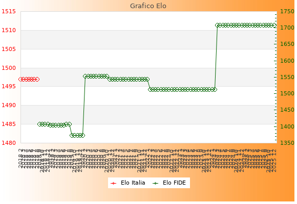 Elo FIDE: 1708    Migliore: 1708  (Dicembre 2025)    Peggiore: 1373  (Settembre 2019)