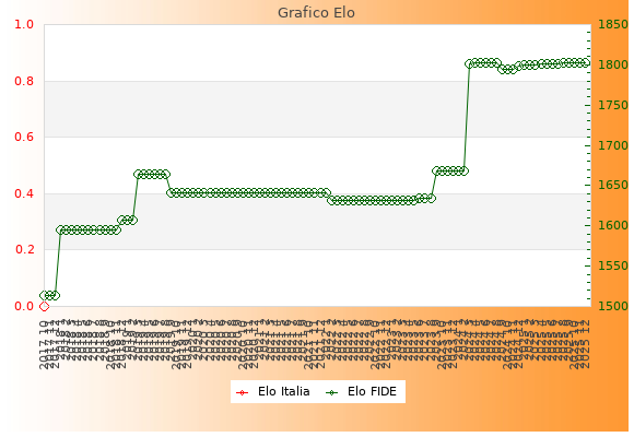 Elo FIDE: 1802    Migliore: 1803  (Agosto 2024)    Peggiore: 1513  (Ottobre 2017)