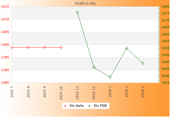 Elo FIDE: 1639    Migliore: 1676  (Novembre 2025)    Peggiore: 1629  (Gennaio 2026)
