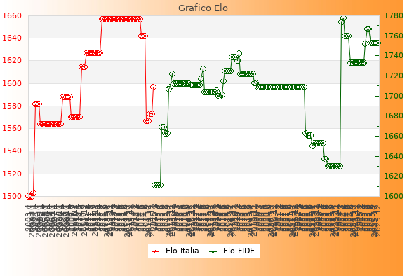 Elo FIDE: 1753    Migliore: 1778  (Aprile 2024)    Peggiore: 1611  (Febbraio 2015)