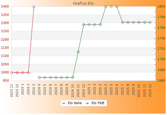 Elo FIDE: 1770    Migliore: 1800  (Giugno 2025)    Peggiore: 1666  (Aprile 2024)