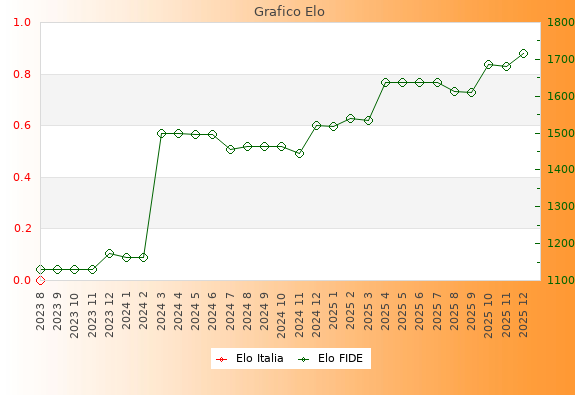 Elo FIDE: 1717    Migliore: 1717  (Dicembre 2025)    Peggiore: 1131  (Agosto 2023)