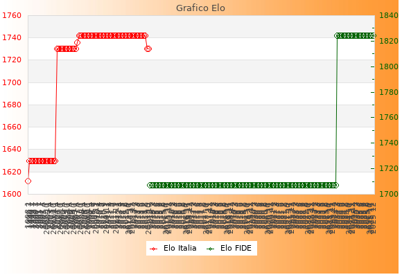 Elo FIDE: 1824    Migliore: 1824  (Dicembre 2025)    Peggiore: 1707  (Gennaio 2015)