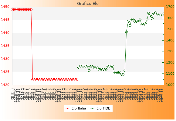 Elo FIDE: 1627    Migliore: 1645  (Agosto 2025)    Peggiore: 1094  (Dicembre 2023)