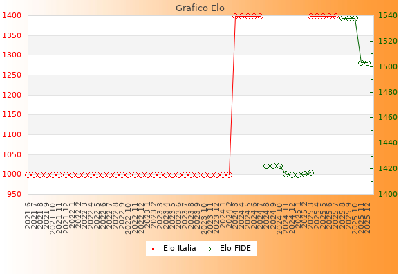 Elo FIDE: 1503    Migliore: 1538  (Ottobre 2025)    Peggiore: 1415  (Dicembre 2024)