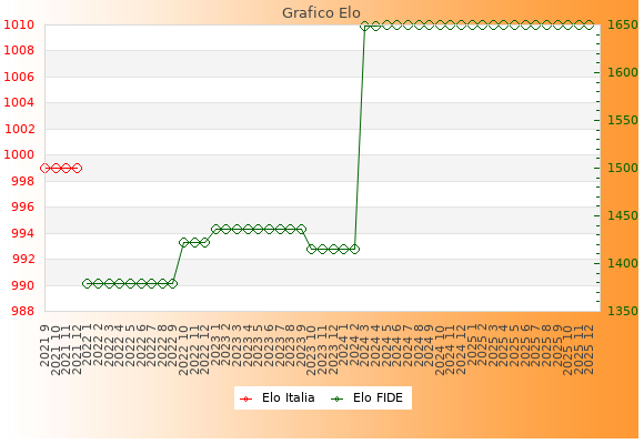 Elo FIDE: 1650    Migliore: 1650  (Dicembre 2025)    Peggiore: 1379  (Gennaio 2022)