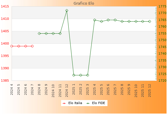 Elo FIDE: 1764    Migliore: 1772  (Dicembre 2024)    Peggiore: 1724  (Gennaio 2025)