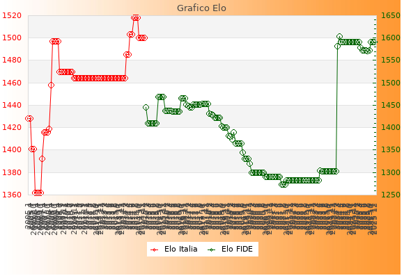 Elo FIDE: 1591    Migliore: 1603  (Aprile 2024)    Peggiore: 1274  (Luglio 2021)