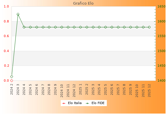 Elo FIDE: 1580    Migliore: 1624  (Marzo 2024)    Peggiore: 1414  (Febbraio 2024)