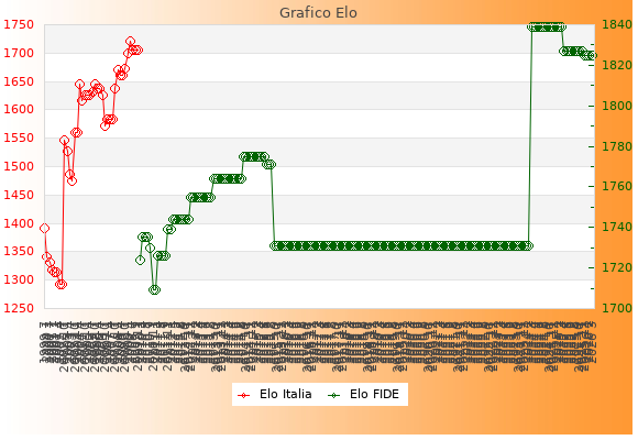 Elo FIDE: 1825    Migliore: 1839  (Marzo 2025)    Peggiore: 1709  (Novembre 2010)