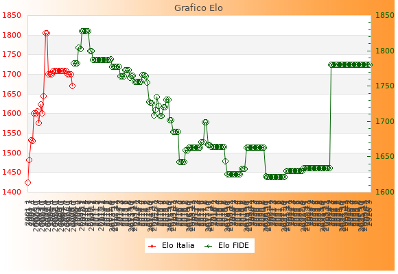 Elo FIDE: 1780    Migliore: 1828  (Luglio 2010)    Peggiore: 1621  (Novembre 2020)