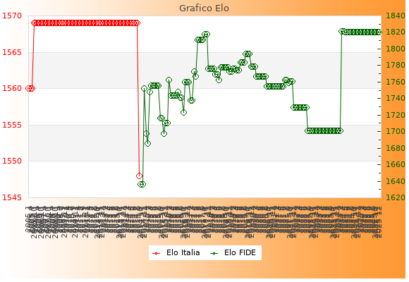 Elo FIDE: 1820    Migliore: 1821  (Aprile 2024)    Peggiore: 1636  (Ottobre 2014)