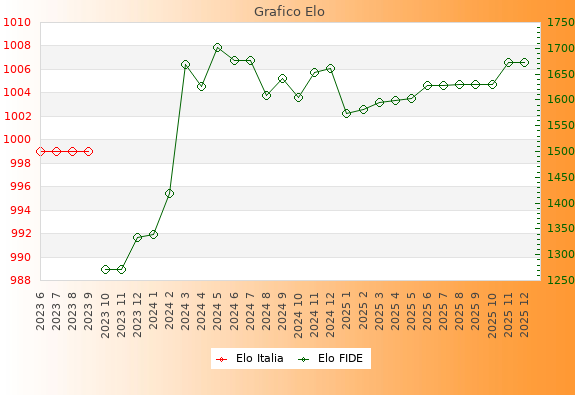 Elo FIDE: 1672    Migliore: 1702  (Maggio 2024)    Peggiore: 1271  (Ottobre 2023)