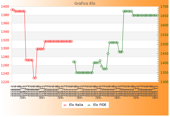 Elo FIDE: 1653    Migliore: 1675  (Agosto 2024)    Peggiore: 1349  (Ottobre 2021)