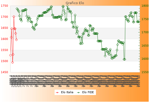 Elo FIDE: 1740    Migliore: 1800  (Ottobre 2016)    Peggiore: 1598  (Gennaio 2024)