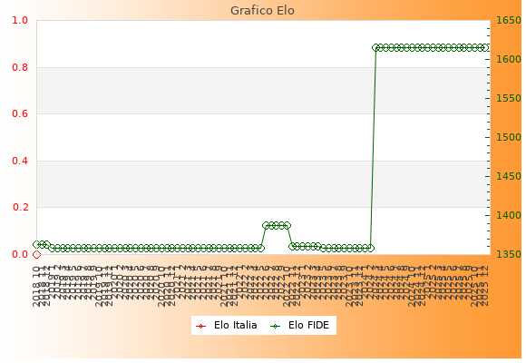 Elo FIDE: 1615    Migliore: 1615  (Dicembre 2025)    Peggiore: 1358  (Gennaio 2019)