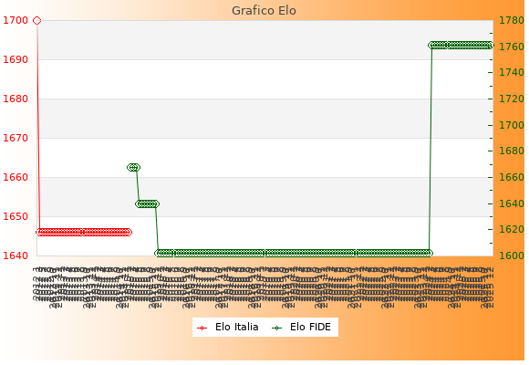 Elo FIDE: 1761    Migliore: 1761  (Dicembre 2025)    Peggiore: 1602  (Dicembre 2015)