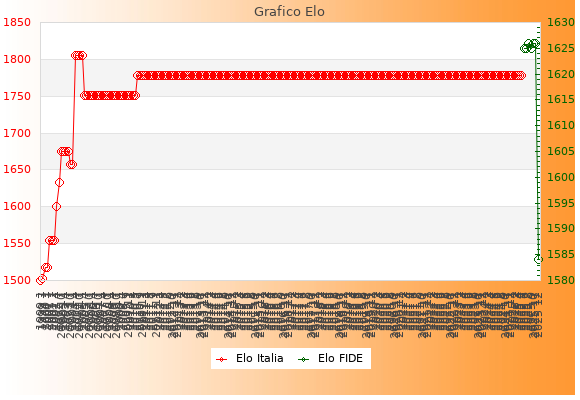 Elo FIDE: 1584    Migliore: 1626  (Novembre 2025)    Peggiore: 1584  (Dicembre 2025)