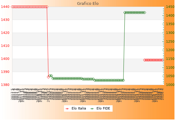 Elo Italia: 1399    Migliore: 1416  (Aprile 2025)    Peggiore: 1026  (Luglio 2022)