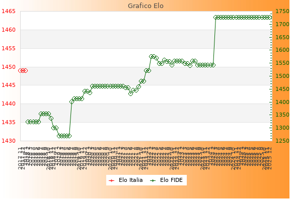Elo FIDE: 1726    Migliore: 1726  (Dicembre 2025)    Peggiore: 1269  (Febbraio 2019)