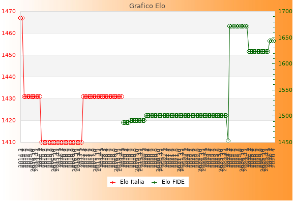 Elo FIDE: 1644    Migliore: 1672  (Gennaio 2025)    Peggiore: 1453  (Febbraio 2024)