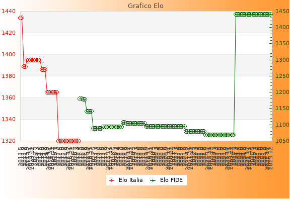 Elo FIDE: 1441    Migliore: 1441  (Dicembre 2025)    Peggiore: 1068  (Settembre 2022)