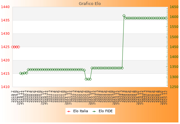 Elo FIDE: 1594    Migliore: 1606  (Marzo 2024)    Peggiore: 1288  (Agosto 2022)