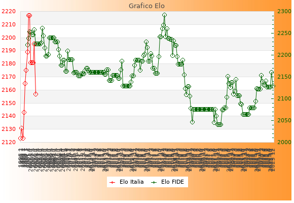 Elo FIDE: 2129    Migliore: 2292  (Febbraio 2018)    Peggiore: 2041  (Dicembre 2021)