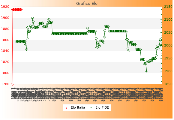 Elo FIDE: 1999    Migliore: 2106  (Gennaio 2007)    Peggiore: 1899  (Febbraio 2024)