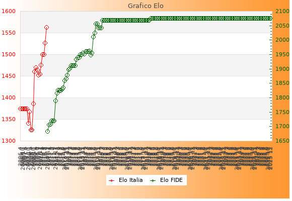 Elo FIDE: 2076    Migliore: 2076  (Dicembre 2025)    Peggiore: 1684  (Novembre 2010)