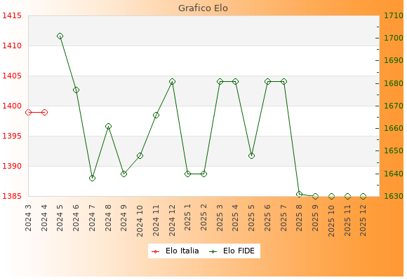 Elo FIDE: 1630    Migliore: 1701  (Maggio 2024)    Peggiore: 1630  (Settembre 2025)