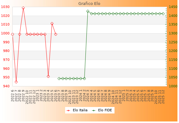 Elo FIDE: 1411    Migliore: 1426  (Marzo 2024)    Peggiore: 1043  (Luglio 2023)