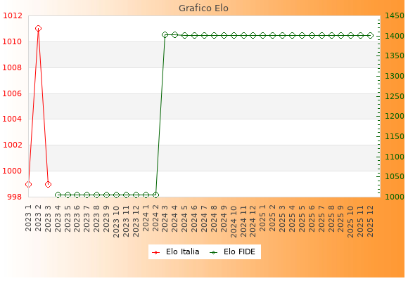 Elo FIDE: 1401    Migliore: 1403  (Aprile 2024)    Peggiore: 1005  (Aprile 2023)