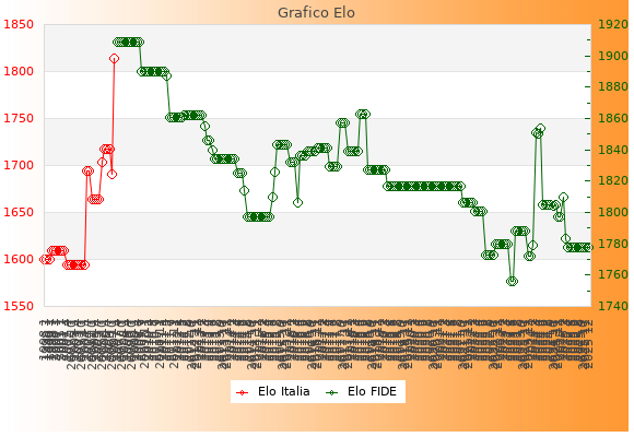 Elo FIDE: 1778    Migliore: 1909  (Luglio 2009)    Peggiore: 1756  (Maggio 2023)