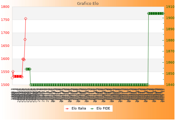 Elo FIDE: 1904    Migliore: 1904  (Dicembre 2025)    Peggiore: 1840  (Gennaio 2007)