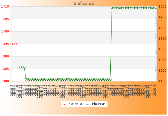 Elo FIDE: 1495    Migliore: 1495  (Marzo 2026)    Peggiore: 1159  (Marzo 2020)