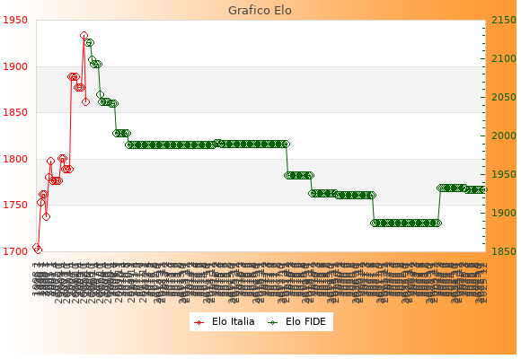 Elo FIDE: 1930    Migliore: 2121  (Luglio 2006)    Peggiore: 1887  (Luglio 2021)