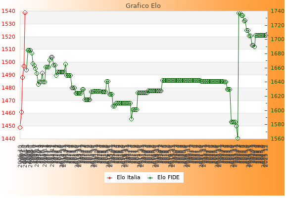 Elo FIDE: 1706    Migliore: 1737  (Aprile 2024)    Peggiore: 1561  (Febbraio 2024)